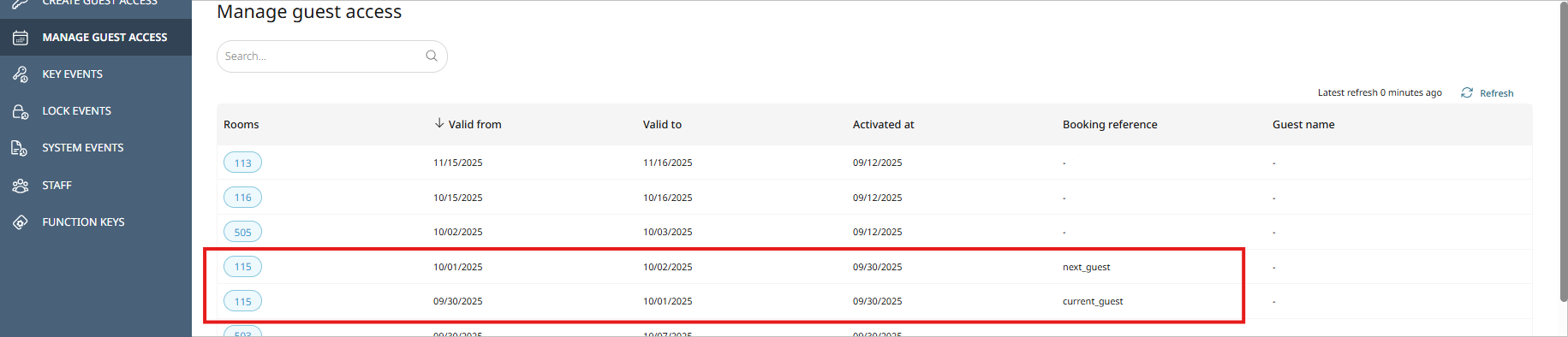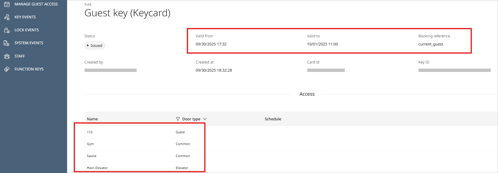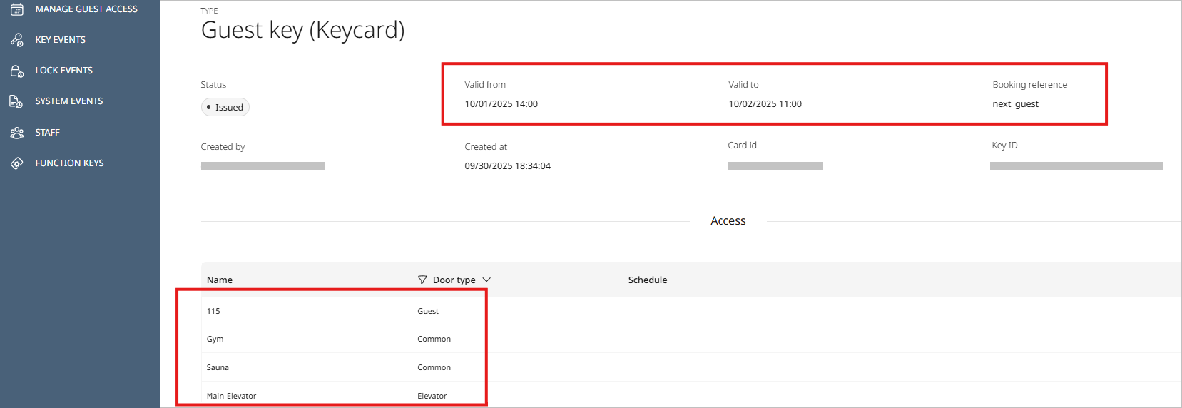 - each guest key can be encoded for one room (either a guest room or a common room)