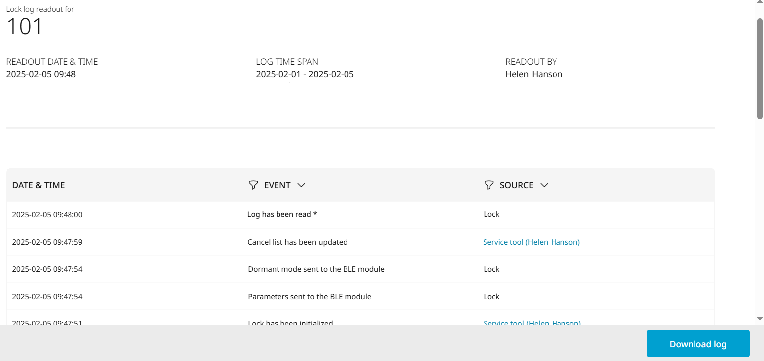 - Scroll down on the page with information on this room. Under ‘Lock log readouts’ at the bottom of the page, click the readout you want to view.